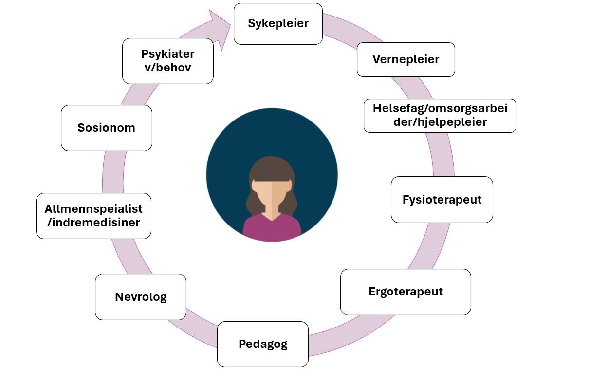 Ved behov kan beboere få oppfølging av ulike fagpersoner, som lege, fysioterapeut, ergoterapeut eller sosionom.